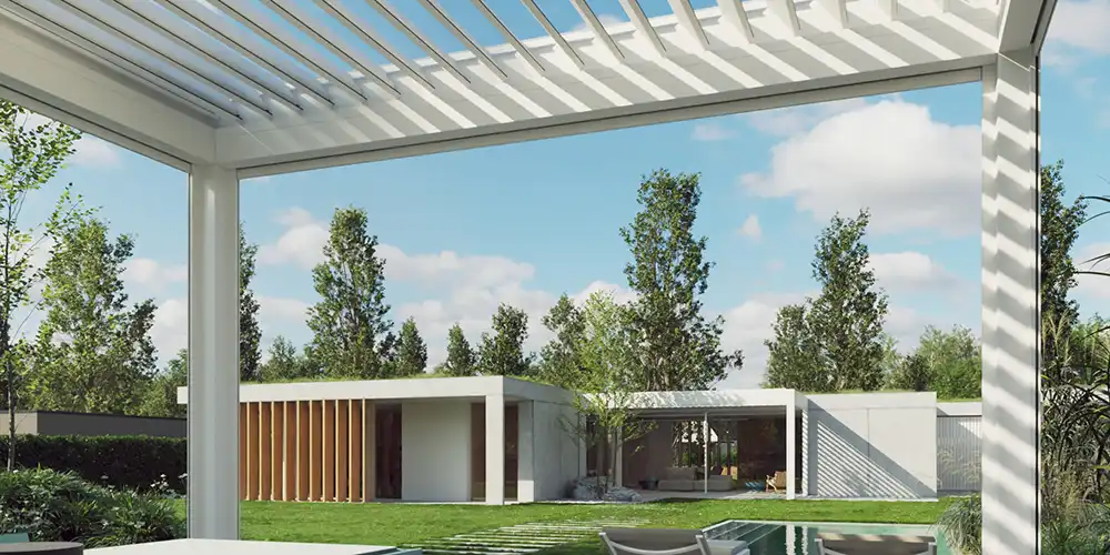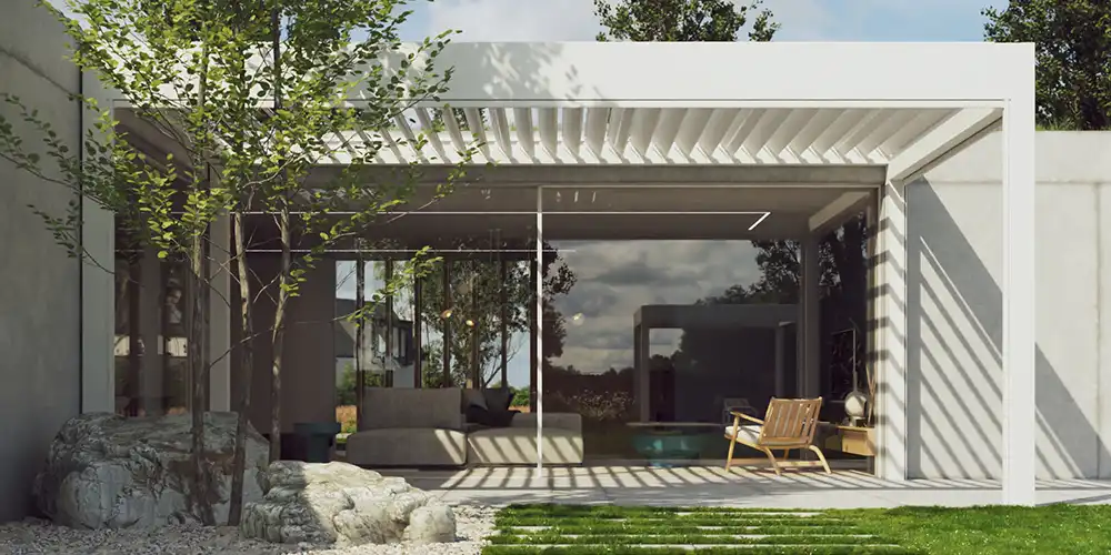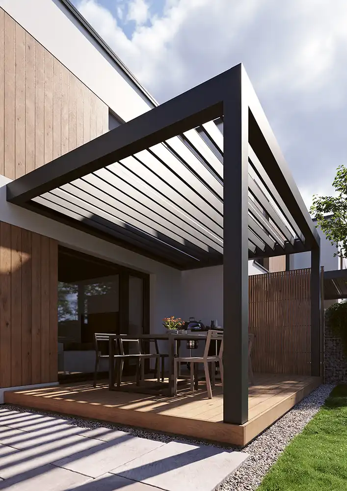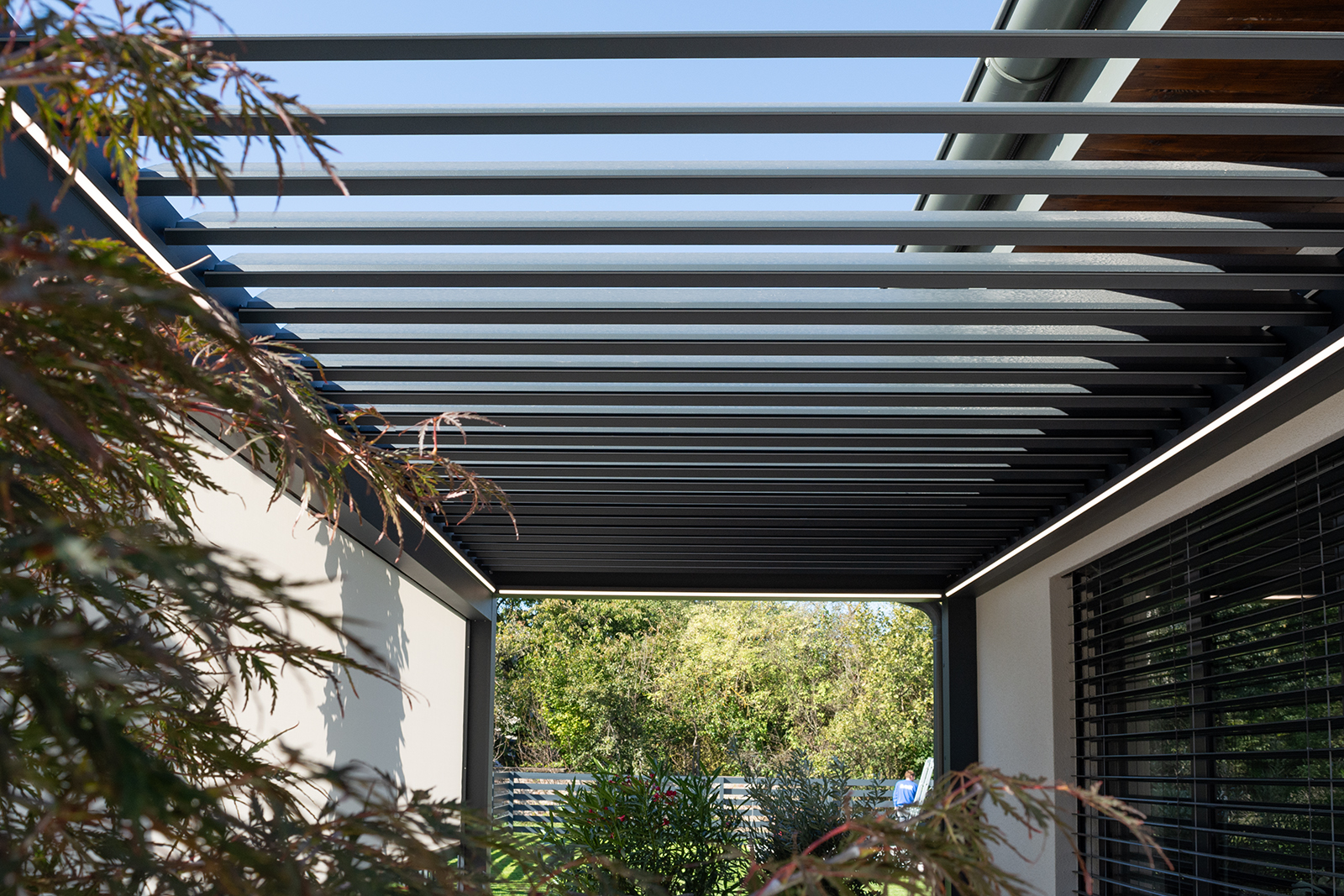 Bioklimatická pergola Lamelino zaisťuje odvetrávanie horúceho vzduchu zo svojho priestoru pomocou naklápacích strešných lamiel. Cirkulácia vzduchu vám zaistí pohodlné posedenie vonku aj počas horúcich dní.